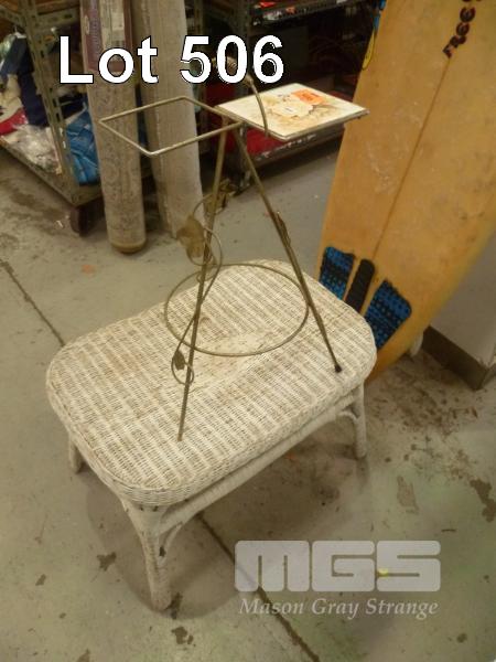 VINTAGE WHITE CANE OUTDOOR COFFEE TABLE & CIGARETTE STAND