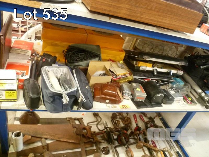 CAMERAS, SONY CAM CORDER, SLIDE PROJECTOR, CARTRIDGES, PROJECTOR SCREEN, ETC