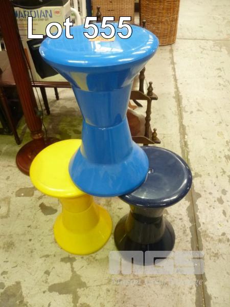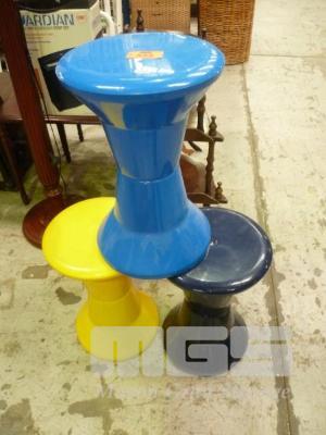 3 x CAROMA PLASTIC STOOLS, BLUE, YELLOW & DARK BLUE