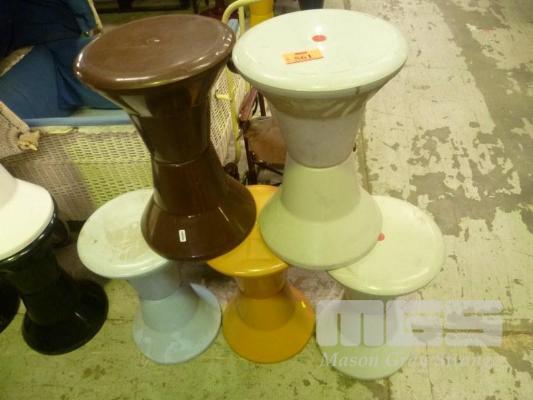 5 x CAROMA PLASTIC STOOLS, BEIGE, BROWN, LIGH TBLUE & 2 x GREY
