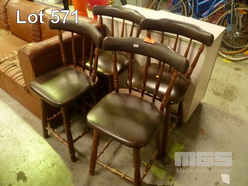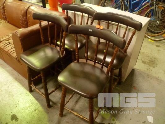 SET 4 TIMBER STOOLS, SPINDLE BACK