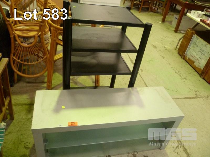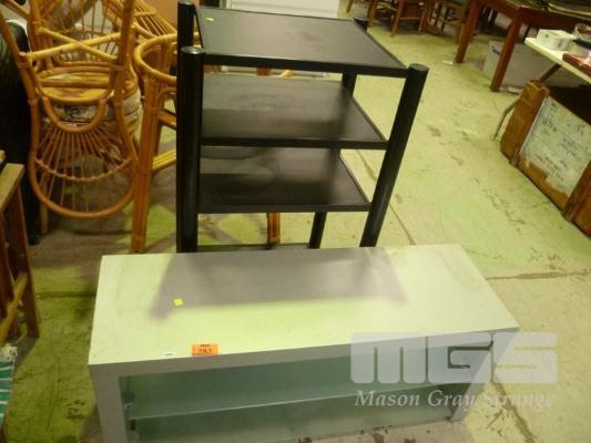 SILVER LOWLINE ENTERTAINMENT UNIT & BLACK 4 TIER DISPLAY STAND