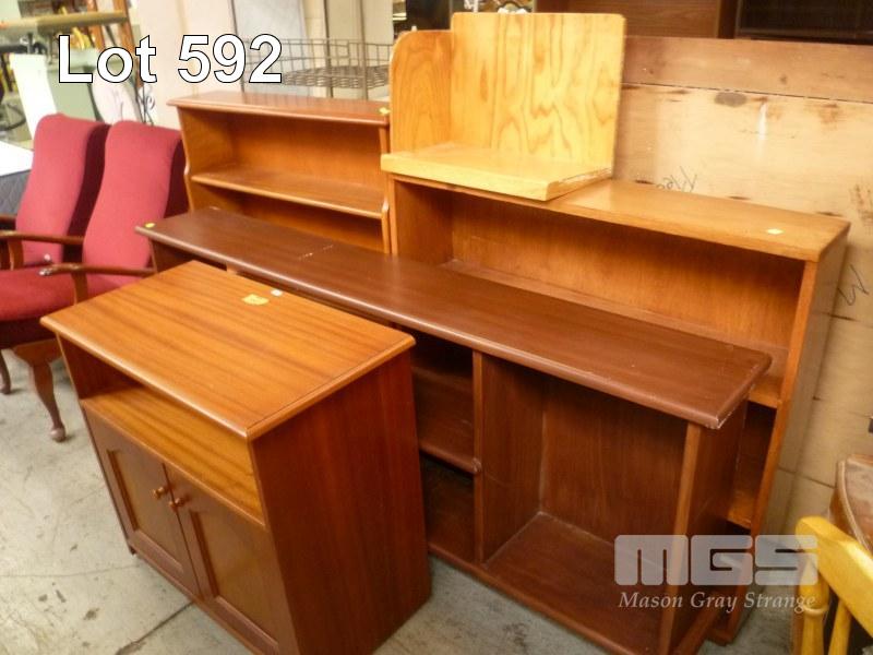 3 x LOWLINE TIMBER BOOKCASES WITH 2 DOOR TIMBER CABINET