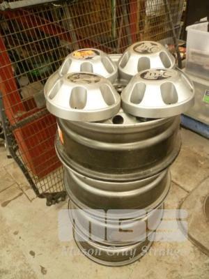 SET OF 4 STEEL 6 STUD RIMS, 16 X 7 WITH 4 X HOLDEN RODEO CENTRE CAPS