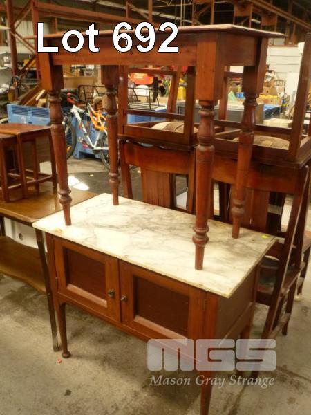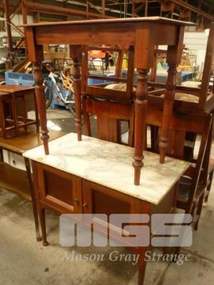 VINTAGE TIMBER WASH STAND, MARBLE TOP & HALL TABLE