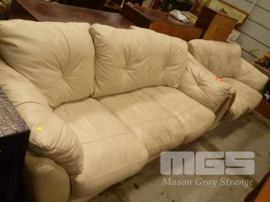 BEIGE LEATHER 2 PIECE LOUNGE SUITE INC 2.5 & 3 SEATER