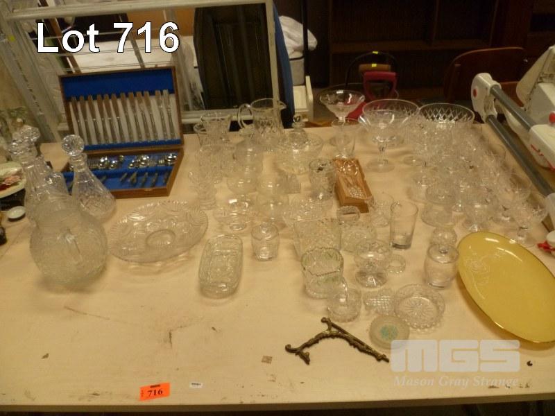 ASSORTED CRYSTAL/GLASSWARE, DECANTERS, BOWLS, ETC, 1 x TABLE