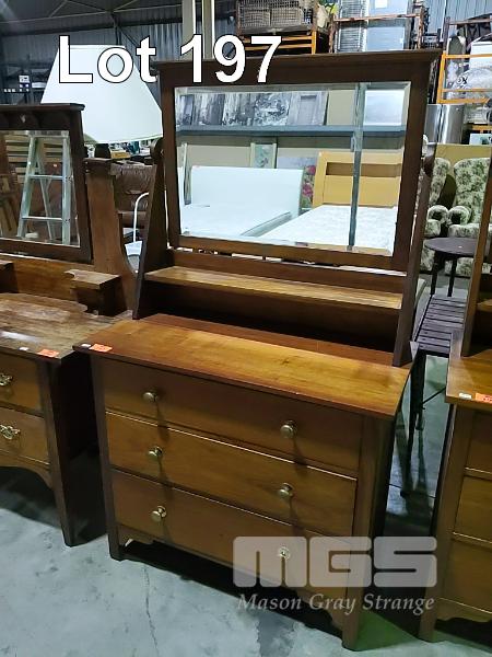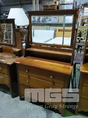 MAHOGANY DRESSER, 3 DRAWER UNDERSTORAGE, TILTING MIRROR, BRASS KNOBS