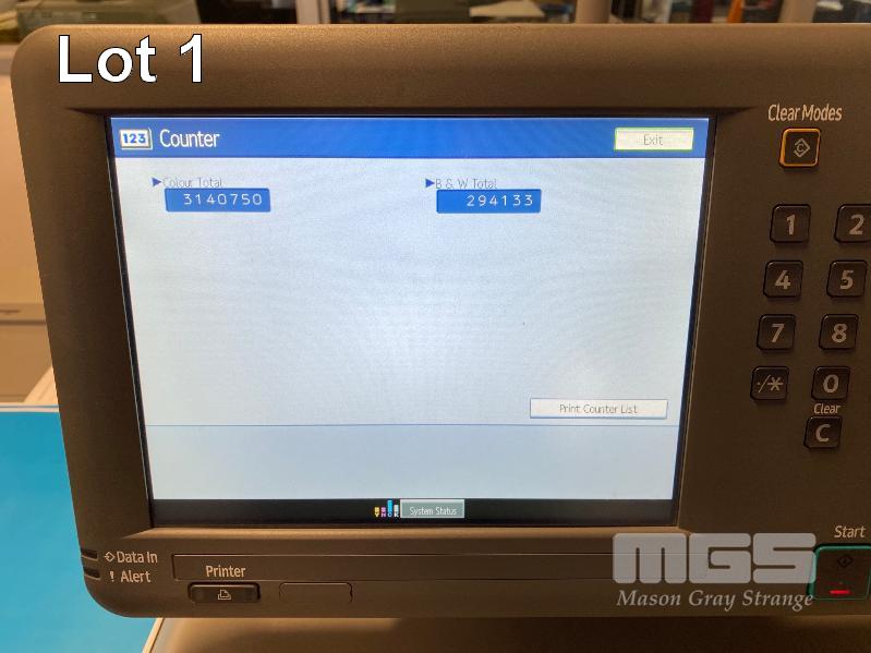 DIGITAL PRINTING PRESS, RICOH PRO C751 COLOUR, FINISHER SR5030, WIDE LARGE CAPACITY TRAY, PUNCH UNIT 2 & 4 HOLES, TWIN INTERPOSER, 15AMP POWER, FIERY E-41A COLOUR CONTROLLER, EFI ES-1000 COLOUR PROFILER, LCD MONITOR "MAVERICK" APPROX COPY COUNT - 3,140,750 COLOUR, 294,133 B&W (TEST PAGE ATTACHED) APPROX OVERALL DIMENSIONS - 320 x 145 x 95cm NOTES: ASSET LOCATED - SOUTH ROAD, EDWARDSTOWN SA INSPECTION & COLLECTION BY APPOINTMENT ONLY PURCHASER TO ARRANGE DECOMMISSIONING & COLLECTION BY 31/8/2021 S/N:S9820920008