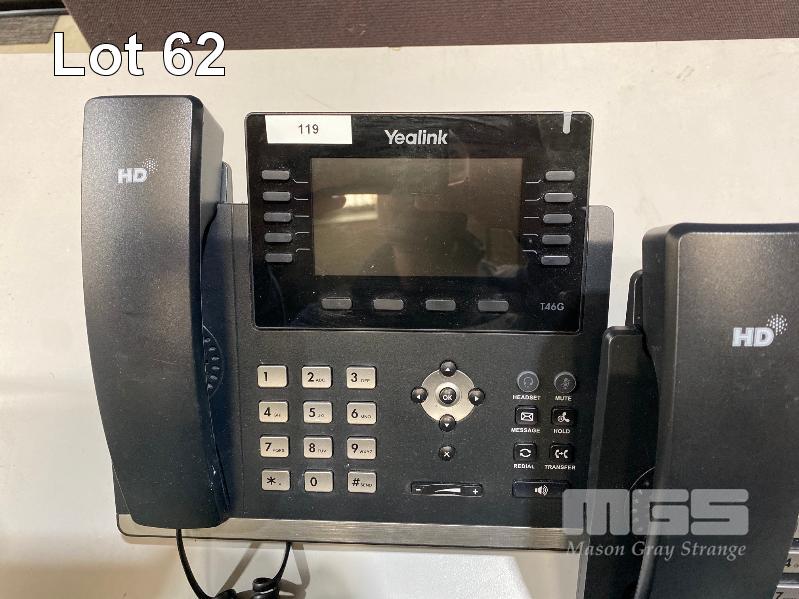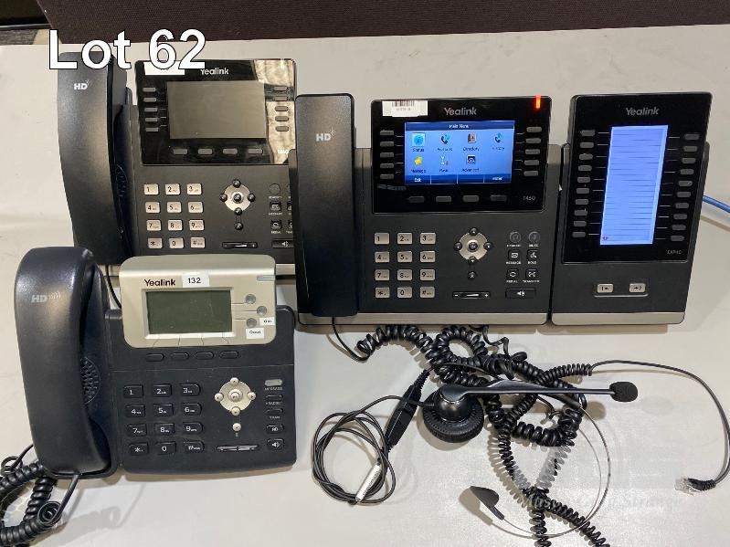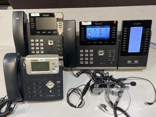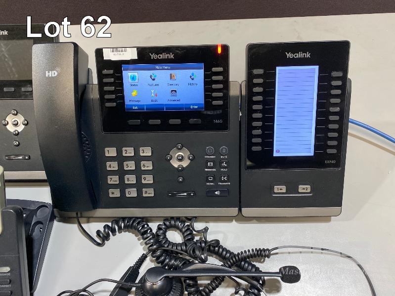 13 x YEALINK SIP-T46G ULTRA-ELEGANT GIGABIT IP PHONES (1 x WITH DAMAGED SCREEN), 1 x YEALINK EXP40 EXPANSION MODULE, 1 x HEADSET, 1 x YEALINK SIP-T22P IP PHONE