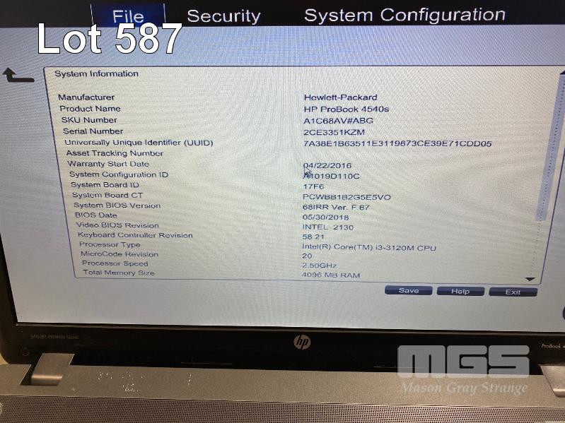 LAPTOP, HP PROBOOK 4540s (A1C68AV), CORE i3 3120M (3RD GEN) @ 2.5GHz, 4GB DDR3 RAM, 320GB SATA HDD, DVD-RW, 15.6" WIDESCREEN (1366x768), INTEL HD VIDEO, Wi-Fi, BLUETOOTH, WINDOWS 7 HOME PREMIUM INSTALLED W/ LICENSE & POWER SUPPLY (NOTE: BATTERY NOT CHARGING, DVD DRIVE FAULTY) S/N:2CE3351KZM
