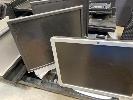 PALLET LOT ASST LCD MONITORS (MOST NO STANDS), 2 x COMPUTERS, BOX ASST KEYBOARDS (NO CABLES)