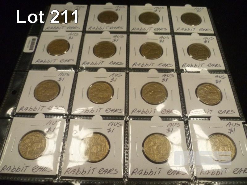 16 X AUSTRALIA, $1 ERROR COINS, INC; RABBIT EARS, SPEW ROO, BACK PACK CUD, THIRD ROO MISSING LEG