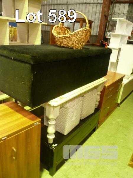 2 x RECTANGULAR COFFEE TABLES & BLACK VELVET BLANKET BOX