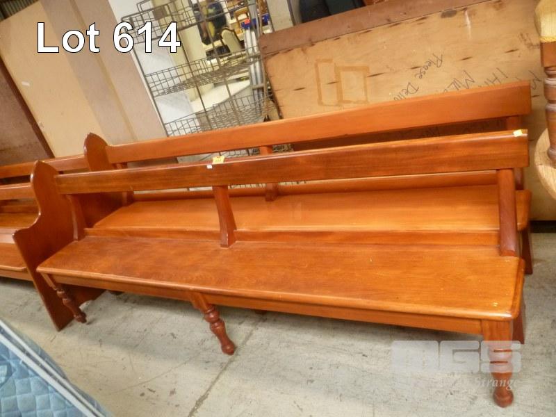 PAIR TIMBER CHURCH PEWS, 245cm (L)