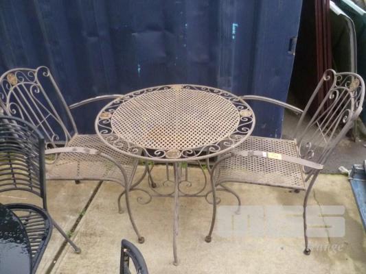 METAL 3 PIECE OUTDOOR SETTING INC ROUND TABLE & 2 x ARM CHAIRS