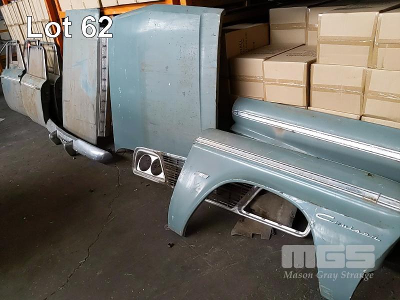 ASSORTED STUDEBAKER CRUISER BODY COMPONENTS & PANELS INC DRIVER & PASSENGER DOORS, 3 x REAR DOORS, FRONT END COMPONENTS, RIGHT HAND FRONT GUARD, RIGHT HAND REAR QUARTER PANEL, BOOT & BONNET, REAR BUMPER BAR & GRILL ASSEMBLY