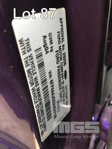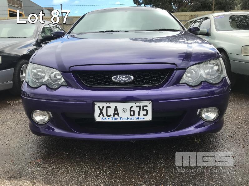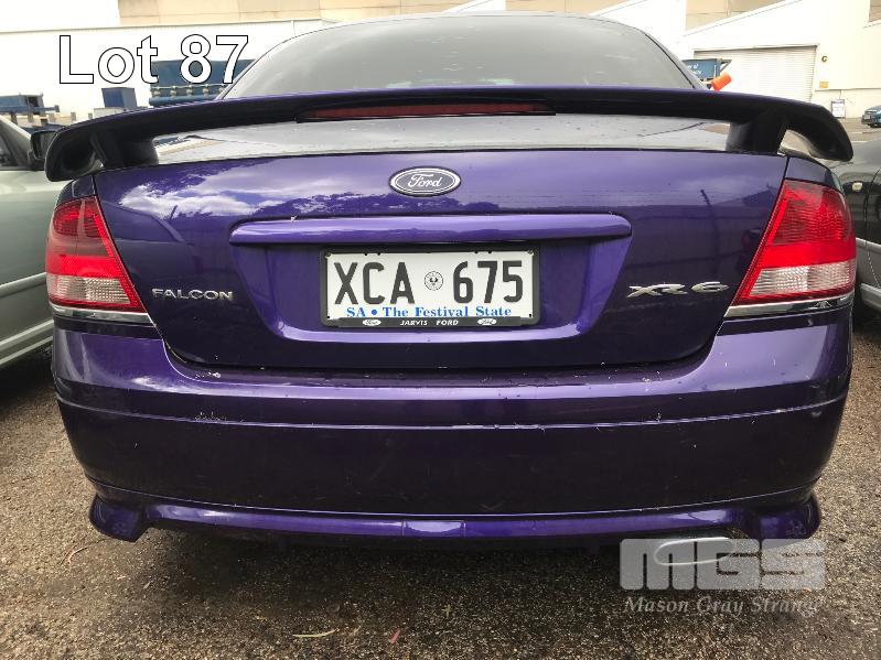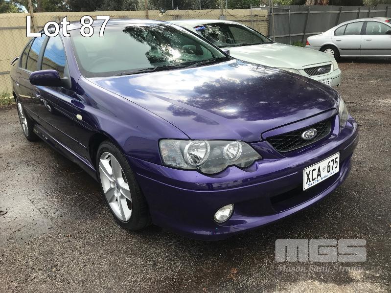 2004 FORD BA FALCON XR6 SEDAN REG: XCA 675 VIN: 6FPAAAJGSW4E47180 ENG: JGSW4E47180 ODO: 108,615kms SHOWING 4 LITRE 6 CYLINDER, 4 SPEED AUTOMATIC TRANSMISSION, PETROL, PHANTOM PURPLE, 4 DOORS, 5 SEAT, ABS, AIR BAG, AIR CON, ALLOY WHEELS, BODY KIT, CD PLAYER, CENTRAL LOCKING, CRUISE CONTROL, IMMOBILISER, POWER STEERING, POWER WINDOWS, SPARE WHEEL (WITH 2 KEY/S, WITH OWNER'S MANUAL, WITH SERVICE BOOKS)