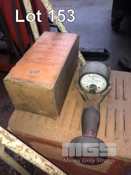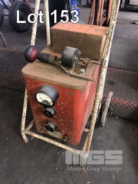 ANTIQUE BATTERY CHARGER, LECTRA, 6amp 90v, WITH DC VOLT TESTER, ON TROLLEY