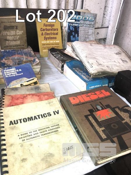 LARGE QUANTITY ASSORTED MANUALS, 17+, BOCE'S, GLENS FOREIGN, DIESEL & TRANS WORKSHOP BOOKS
