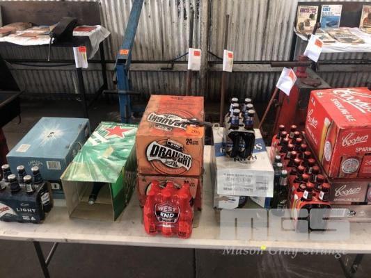 QUALITY BOTTLE OPENER, INCLUDING 7+ CARTONS OF 10c RECYCLABLE BOTTLES (LIQUID CONTENTS THROWN IN)