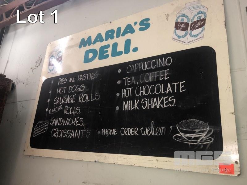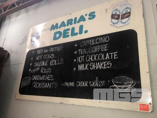 VINTAGE MASONITE SHOP SIGN, "MARIAS DELI"