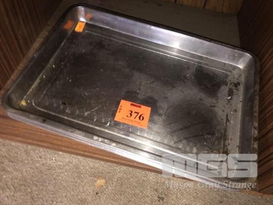 5 x STAINLESS STEEL TRAYS, 490 x 340mm
