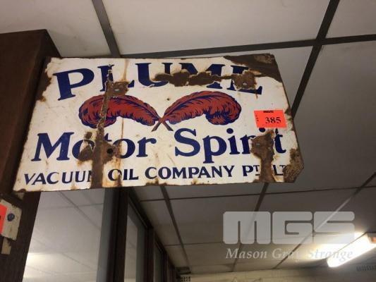 "PLUME" MOTOR SPIRIT SIGN ENAMUAL DOUBLE SIDED.