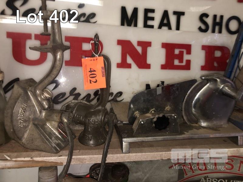 2 x VINTAGE MEAT GRINDERS & SLICER