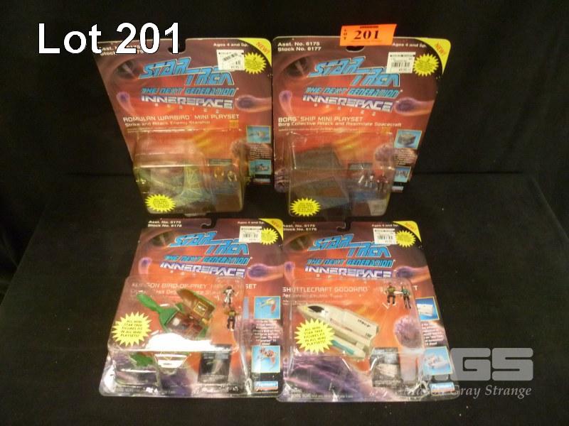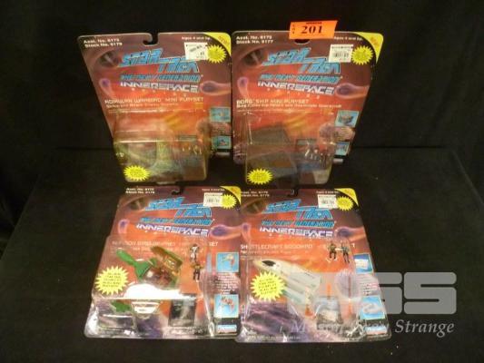 4 x STAR TREK THE NEXT GENERATION, INNERSPACE SERIES MINI PLAY SETS IN ORIGINAL PACKAGING, INC ROMULAN WARBIRD, BORG SHIP, SHUTTLE CRAFT GODDARD & KLINGON BIRD OF PREY