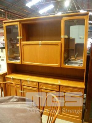 TEAK 2 PIECE WALL UNIT, 4 DRAWER/DOOR UNDERSTORAGE, COCKTAIL DOOR, 2 x GLAZED DOORS