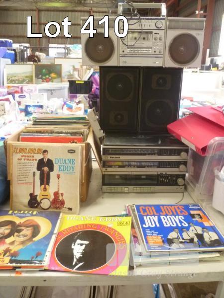 VINTAGE VOXSON RECORD PLAYER STEREO, SANYO BOOM BOX & LP RECORDS INC DUANE EDDY, BLUES, DR HOOK, ETC