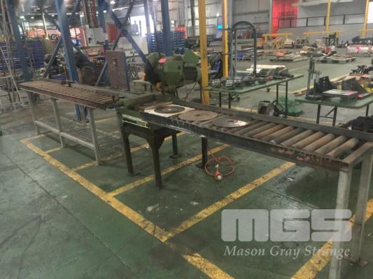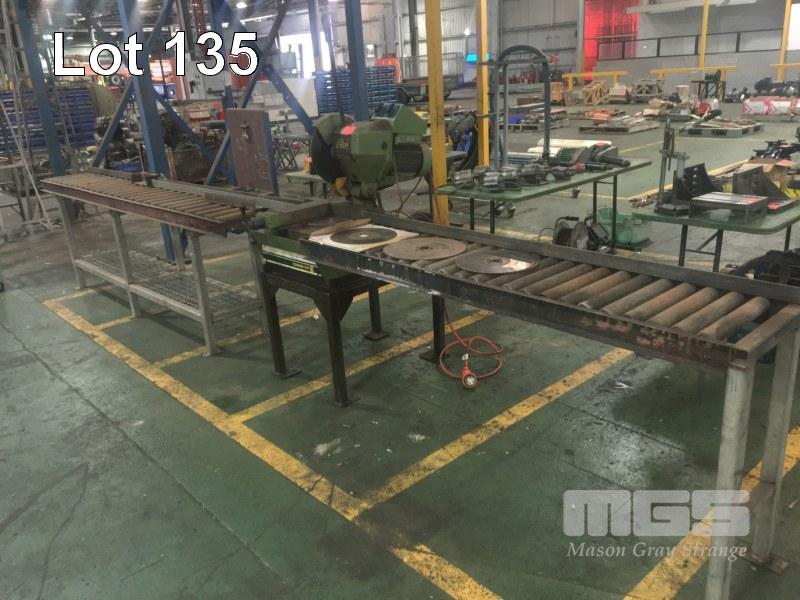 METAL CUT COLD SAW, MEP MOD: CONDOR350 COOLANT FEED, 415V WTH SPARE BLADES & INFEED & OUTFEED ROLLER CONVEYORS, 400 x 5700 x 900mm (H)