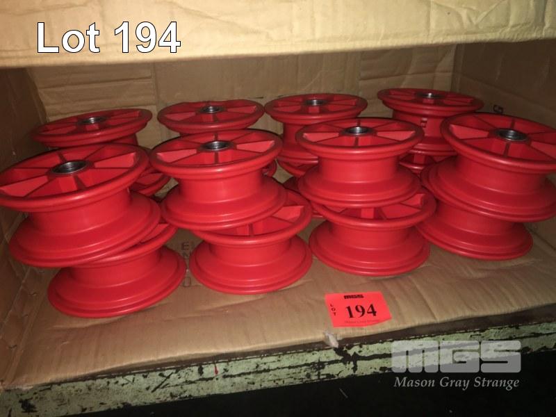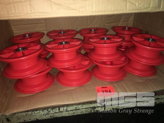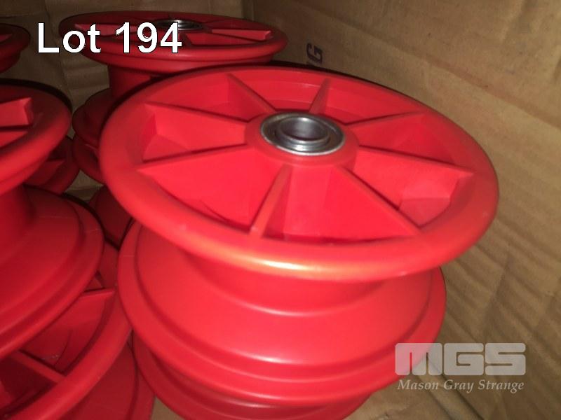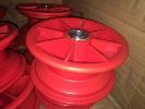 16 x RED POLY WHEEL HUBS & RIMS WITH BEARINGS, 170mm DIAMETER x 80mm