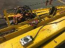 SWING ARM GANTRY, HEAVY DUTY STEEL 200 x 200mm COLUMN HEIGHT: 3850mm ARM LENGTH: 2600mm FITTED WITH BEAM TROLLEY & ANCHOR ELECTRIC CHAIN HOIST MOD: ES0035 SWL: 250kg PENDANT CONTROL, 415V