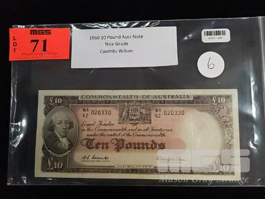 1960 10 POUND NOTE COOMBS WILSON RARE NOTE CIRCULATED VF