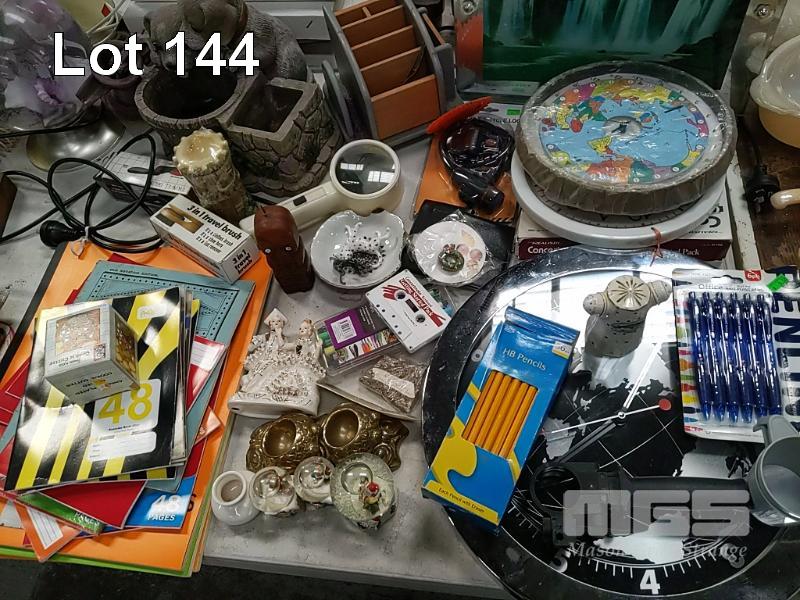 ASSORTED HOMEWARES, GAMES, TOOLS, NOTE PADS, CLOCKS TELESCOPE AND OTHER NOVEL ITEMS (1 x TABLE)