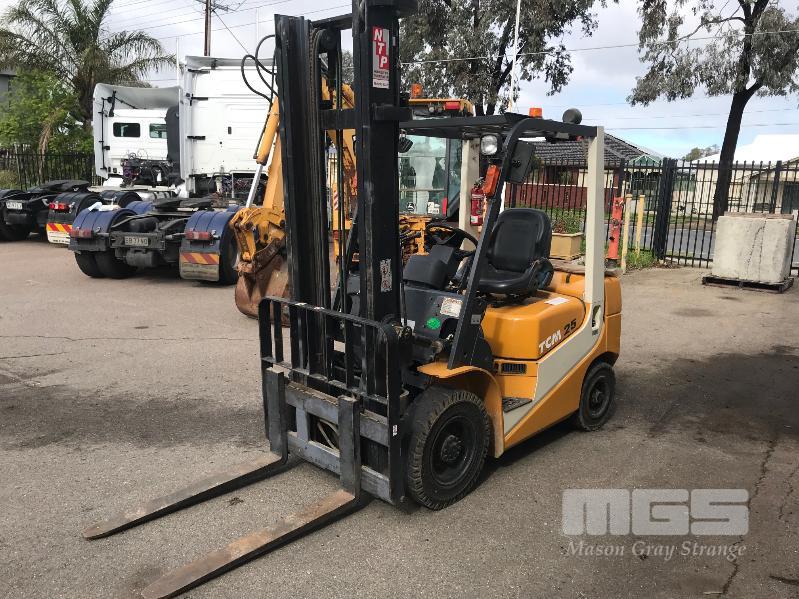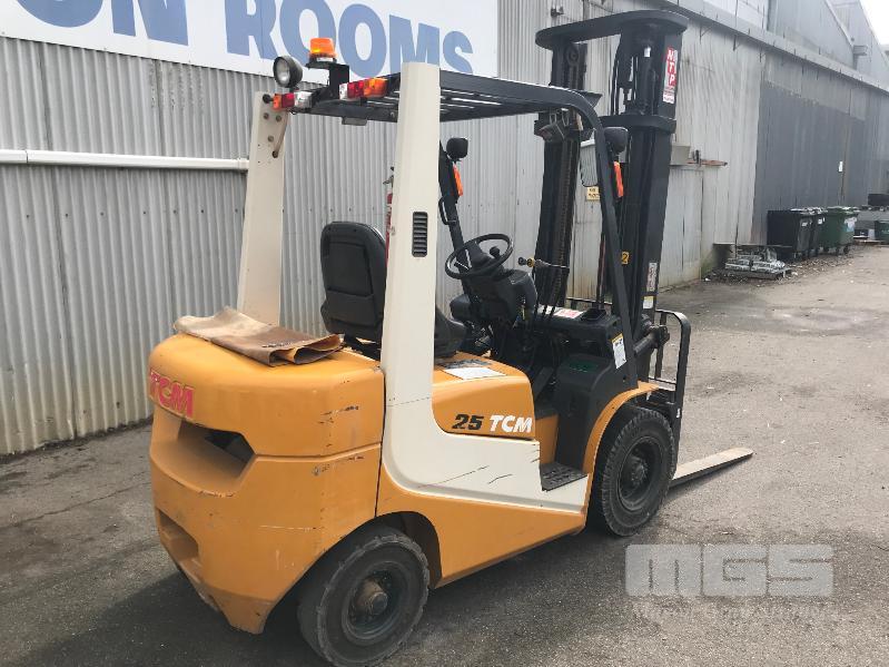 FORKLIFT, TCM MOD: FD25T6 HOURS: 693 INDICATED 4 CYLINDER ISUZU DIESEL 2 STAGE CLEARVIEW MAST SIDE SHIFT LIFT CAP: 2,280kg DIGITAL LOAD SCALE MAX LIFT HEIGHT: 400cm SOLID TYRES KEY #11