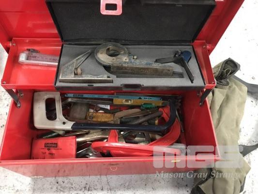 BOILERMAKERS TOOL KIT, BTK061 STANLEY TOOL BOX & CONTENTS INC COMBINATION ANGLE SET, G-CLAMPS, SCREW DRIVERS, HACK SAW, ALLEN KEYS, LEVEL, PIPE SCRIBE, PLIERS, CANVAS BAG, ETC