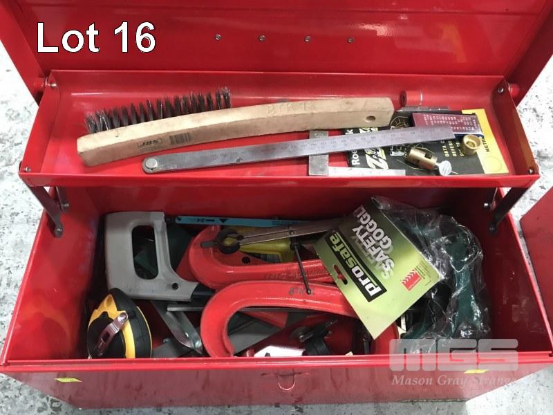 BOILERMAKERS TOOL KIT, BTK096 STANLEY TOOL BOX & CONTENTS INC DIVIDERS, MEASURES, G-CLAMPS, CHIPPING HAMMER, FILES, TIN SNIPS, MAGNETIC SQUARES, ALLEN KEYS, WIRE BRUSH, CHALK LINE, ETC