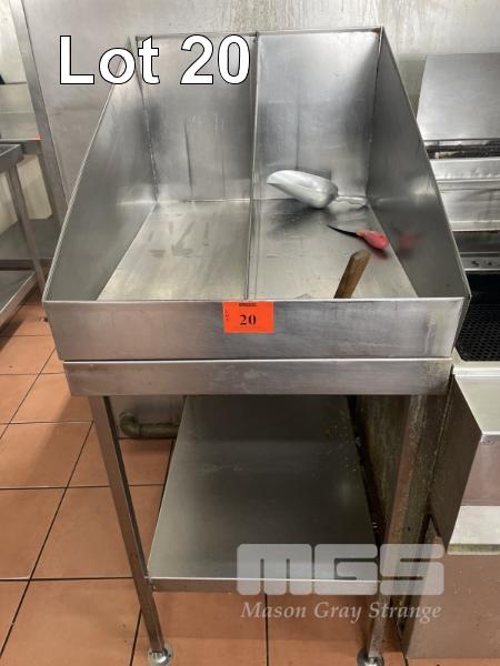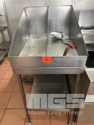 CHIP BIN, 2 COMPARTMENT, STAINLESS STEEL ON STAINLESS STEEL BENCH 58 x 80cm 2 TIER WITH SPLASH BACK