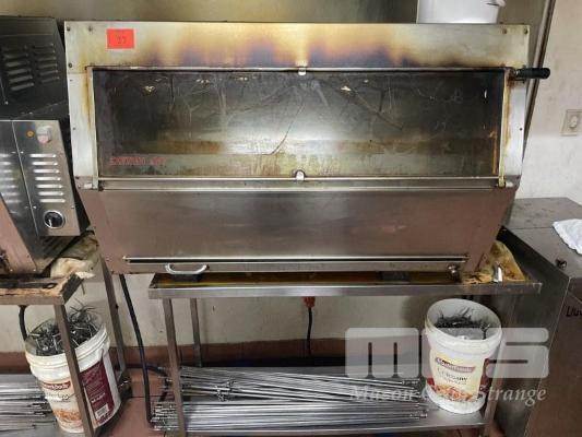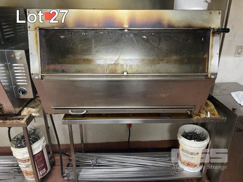 36 BIRD ROTISSERIE, SEMAC MOD: 5.6 415V ON STAINLESS STEEL MOBILE TROLLEY WITH CHICKEN SKEWERS
