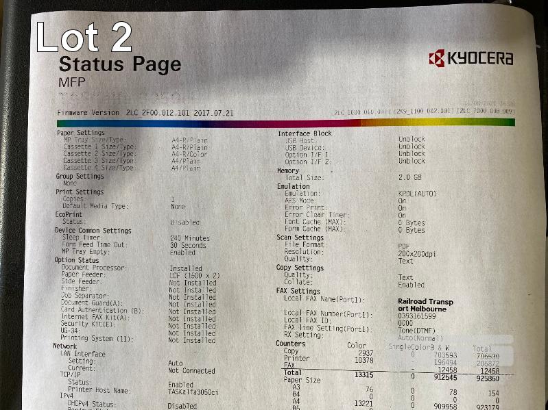 PHOTOCOPIER, KYOCERA TASKALFA 3050ci COLOUR, ADF, PRINTER USB & NETWORK PORTS, 13,316 COLOUR & 912,545 B&W COPIES SHOWING (TEST PAGE ATTACHED) S/N:1102LK3AS0