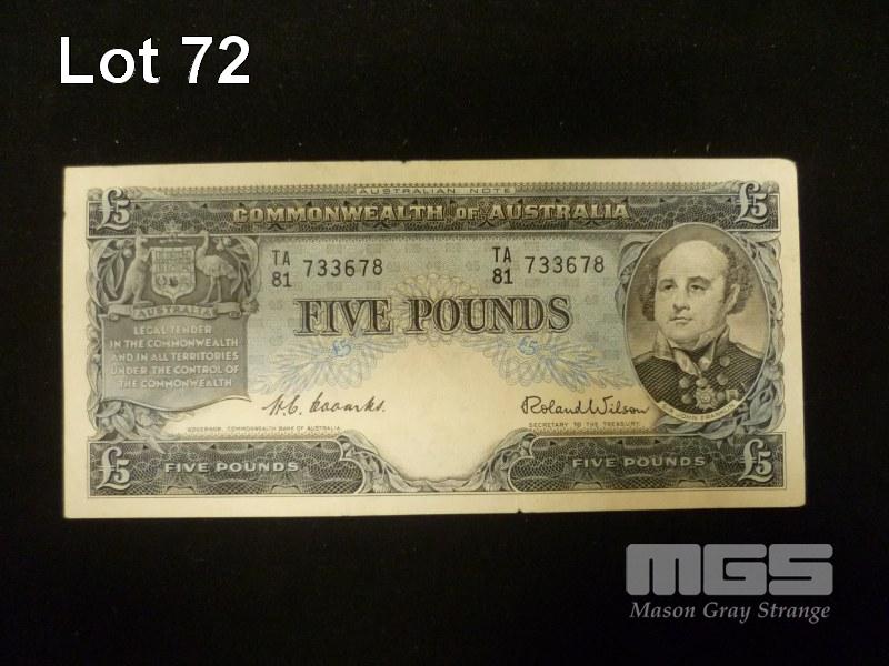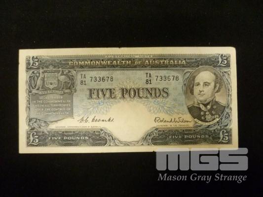 1954 5 POUND NOTE COOMBS WILSON NICE GRADE WITH DECRIPTION SHEET