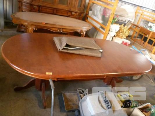 MAHOGANY STAINED OVAL DINING EXTENSION TABLE
