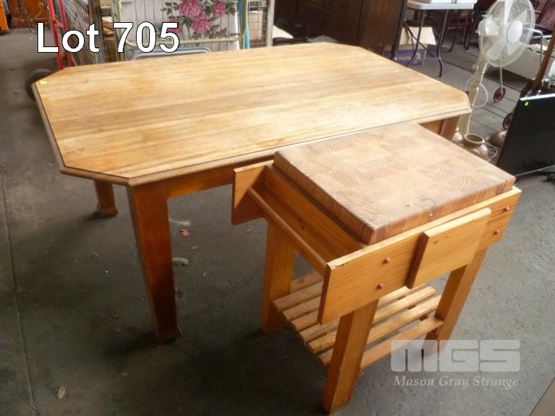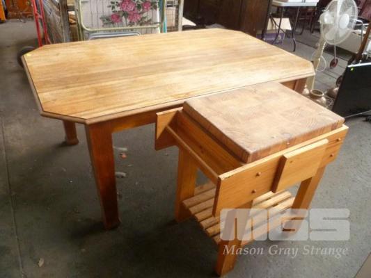 OAK RECTANGULAR DINING TABLE & PINE BUTCHERS BLOCK