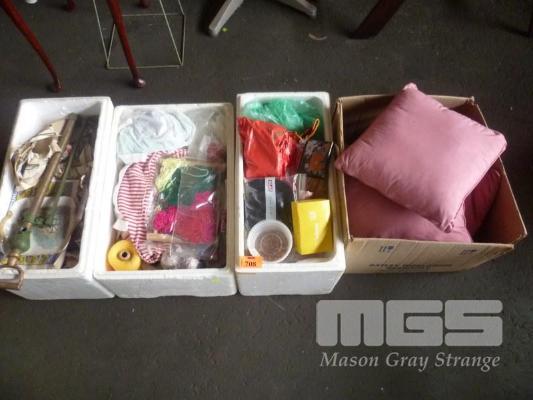 PINK CUSHIONS, CRAFT SUPPLIES, GLASSWARE, ETC