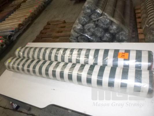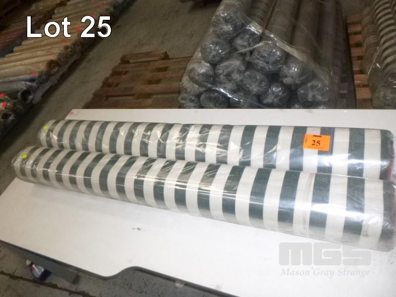 2 x ROLLS TEXTILENE FABRIC, GREEN/WHITE STRIPE, 1.5 x 25m APPROX