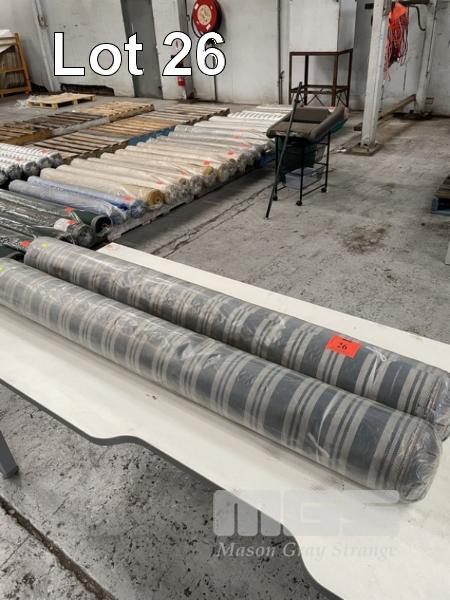 2 x ROLLS TEXTILENE FABRIC, NAVY/WHITE STRIPE, 1.5 x 25m APPROX