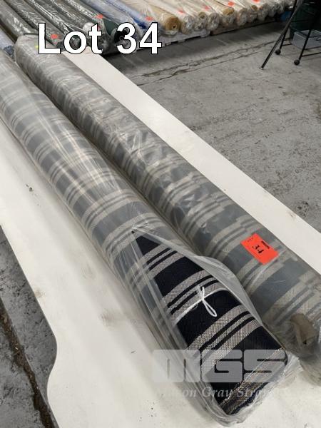 2 x ROLLS TEXTILENE FABRIC, NAVY/WHITE STRIPE, 1.5 x 25m APPROX